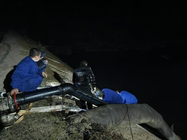 1月4日,公司抽調(diào)生產(chǎn)部、工程部的技術(shù)骨干人員,組建水源保供攻堅小組,在劉家河水庫開展閘閥堵漏和提水抽水工作。小組兵分四路,一路駐扎劉家河圍堰,安裝發(fā)電機和抽水泵,將水庫大壩下游的水抽到大壩內(nèi),并對輸水管道閘閥漏水點開展堵漏;一路開展全城區(qū)主供水管道探漏堵漏,最大程度減少水資源浪費;一路積極和電力部門協(xié)調(diào)聯(lián)系接通高壓線路,力爭在最短時間完成抽水管道安裝;一路積極溝通協(xié)調(diào)相關(guān)部門,在普安周邊尋找可用水源,盡可能向普安補充原水。
