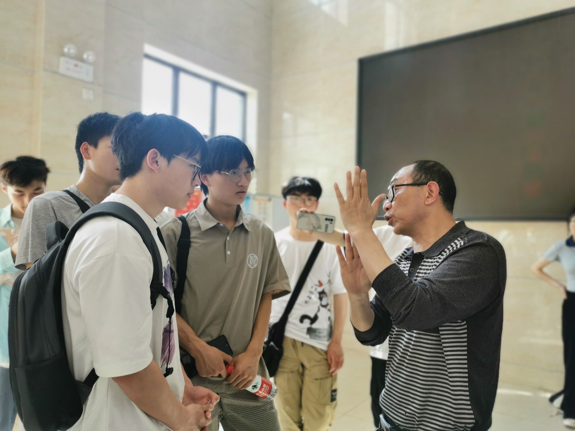 楊旭東帶領(lǐng)同學們實地講解了我廠污水處理工藝流程及剩余污泥脫水處理工藝流程,并詳細介紹了每座構(gòu)筑物在實際處理工藝流程中的作用及處理效果,隨后進行了集中答疑解惑。