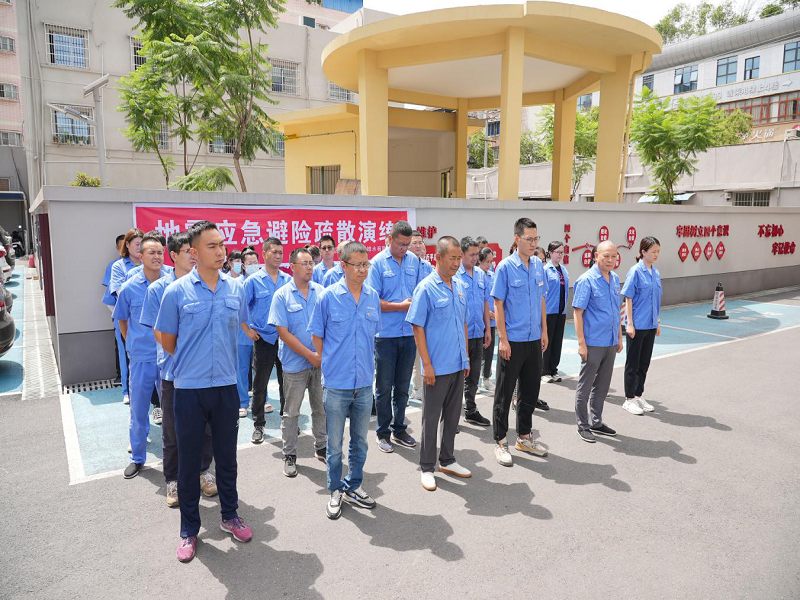 隨著地震波到達信號發(fā)出,演練正式開始,全體干部職工立即進入緊急避險狀態(tài),在會議室、辦公室立即采取了正確的緊急避險動作,就近選擇安全地點躲避。隨后,所有人員在引導下沿著安全通道迅速有序撤離,到達空曠地帶后各部門迅速集合隊伍清點人員,并上報應急演練總指揮“應到人數、實到人數、人員傷亡及各廠區(qū)運行等情況”。