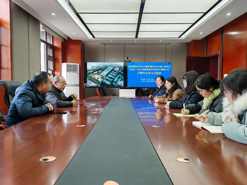 1月4日,西華師范大學(xué)環(huán)境科學(xué)及環(huán)境工程專業(yè)4名學(xué)生赴四川川投水務(wù)集團(tuán)南充環(huán)保技術(shù)有限公司開展畢業(yè)實(shí)習(xí)。南充環(huán)保黨支部書記、董事長(zhǎng)、總經(jīng)理?xiàng)钚駯|在三樓會(huì)議室主持召開了實(shí)習(xí)見面會(huì),并帶領(lǐng)學(xué)生實(shí)地參觀了公司污水處理廠。