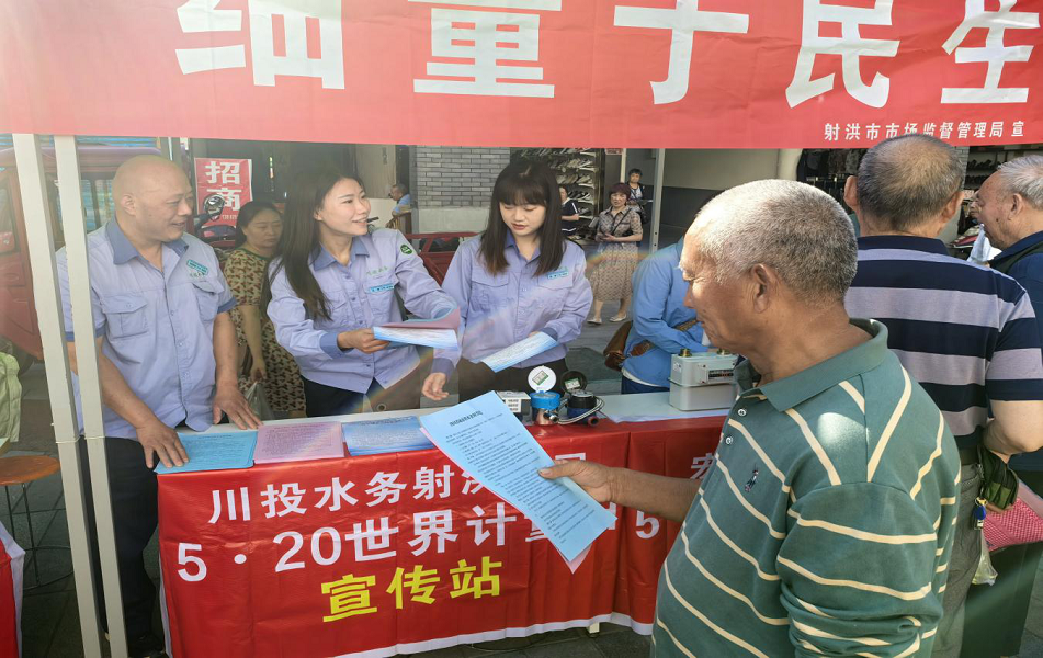 2024年5月20日是第二十五個世界計量日,為加強(qiáng)計量科普宣傳,增強(qiáng)全社會計量意識,營造世界計量日良好的宣傳氛圍,川投水務(wù)射洪水司開展“5·20世界計量日”宣傳活動。
