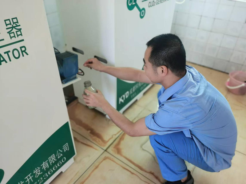 搶險(xiǎn)隊(duì)員穿戴防化服和防毒面具,進(jìn)入加氯間切斷設(shè)備電源、打開(kāi)通風(fēng)設(shè)備、啟動(dòng)高壓水槍對(duì)漏點(diǎn)進(jìn)行噴淋,同時(shí)使用沙土將地面液體進(jìn)行吸附收集,避免造成環(huán)境污染。在現(xiàn)場(chǎng)清理完畢后,化驗(yàn)人員對(duì)加氯間進(jìn)行多點(diǎn)位進(jìn)行采樣分析,在確保PH值、余氯、空氣質(zhì)量等數(shù)據(jù)結(jié)果正常后,解除應(yīng)急狀態(tài),恢復(fù)正常供水。