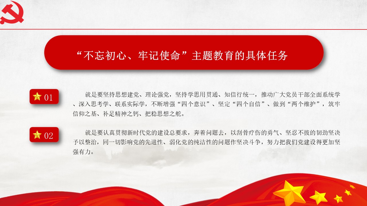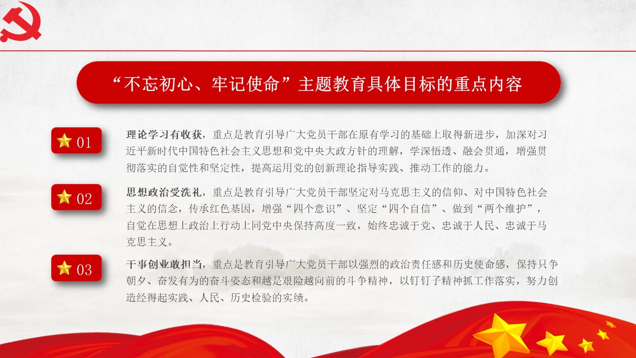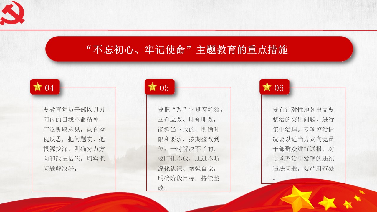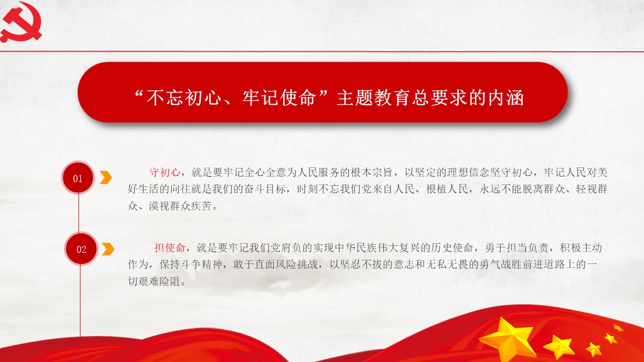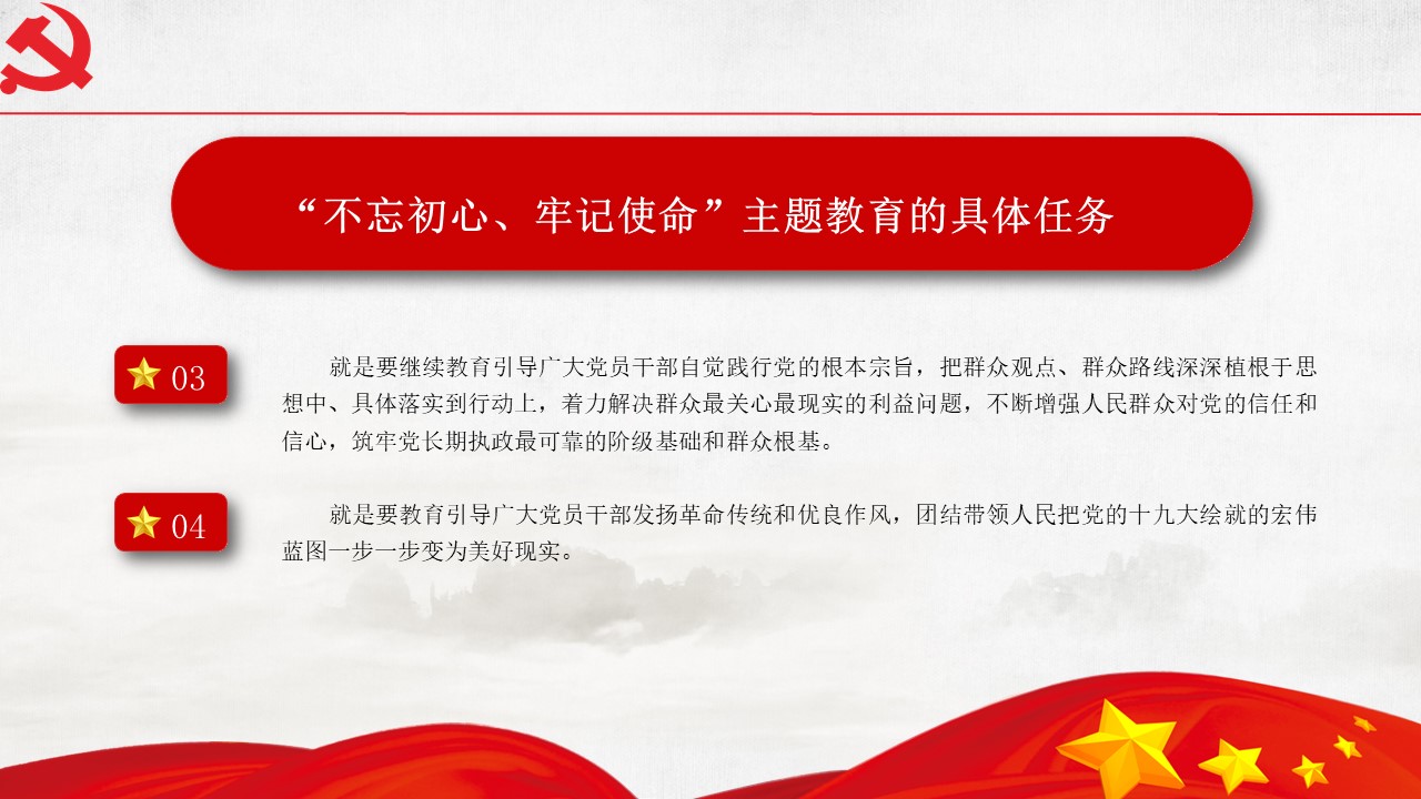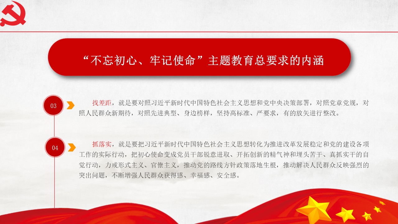 5月31日“不忘初心、牢記使命”主題教育工作會(huì)議31日在北京召開。中共中央總書記、國(guó)家主席、中央軍委主席習(xí)近平出席會(huì)議并發(fā)表重要講話。他強(qiáng)調(diào),為中國(guó)人民謀幸福,為中華民族謀復(fù)興,是中國(guó)共產(chǎn)黨人的初心和使命,是激勵(lì)一代代中國(guó)共產(chǎn)黨人前赴后繼、英勇奮斗的根本動(dòng)力。開展“不忘初心、牢記使命”主題教育,要牢牢把握守初心、擔(dān)使命,找差距、抓落實(shí)的總要求,牢牢把握深入學(xué)習(xí)貫徹新時(shí)代中國(guó)特色社會(huì)主義思想、...